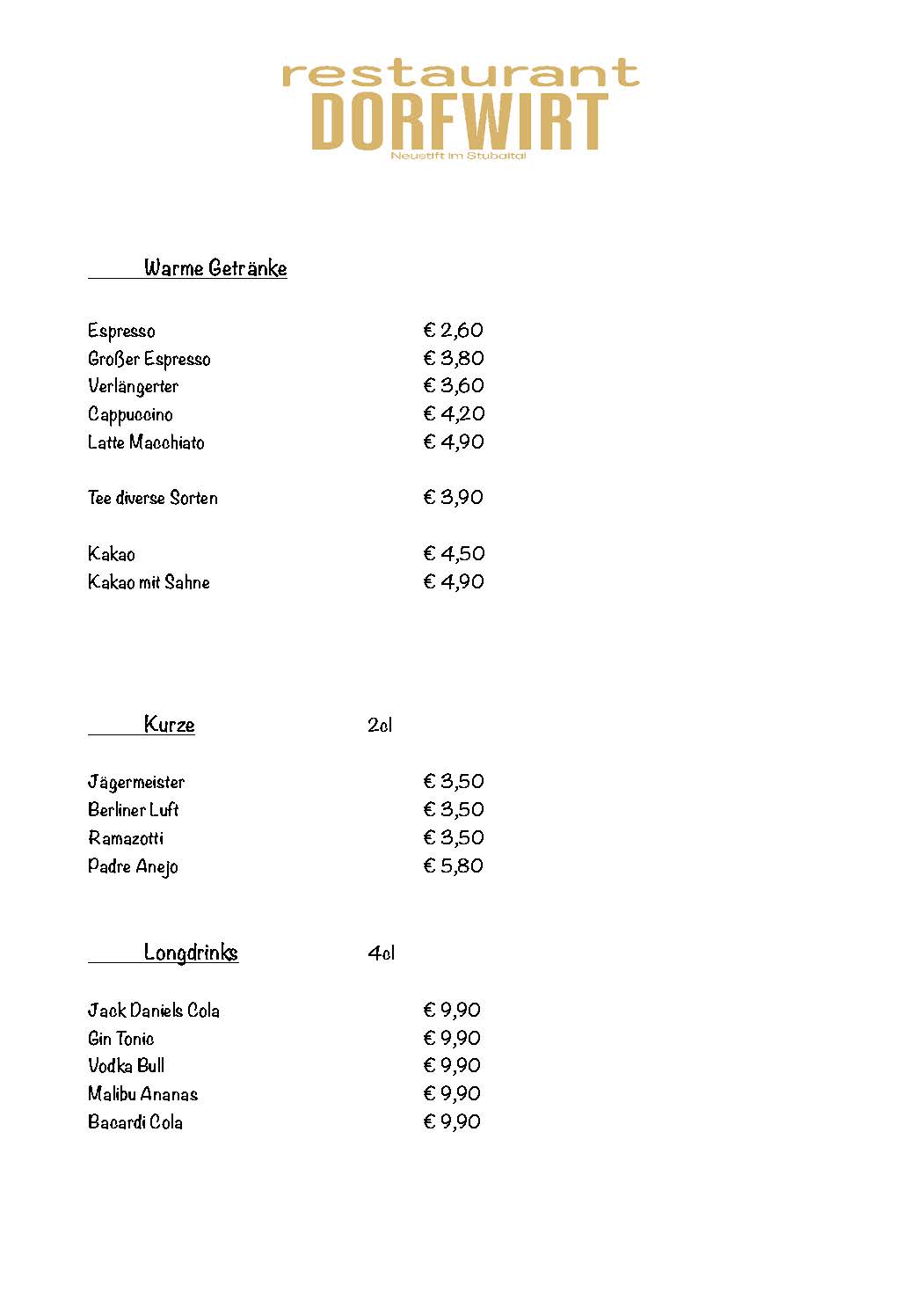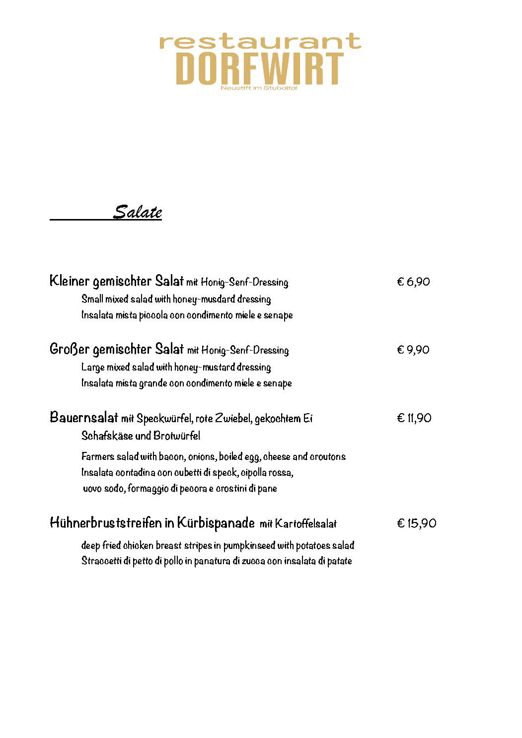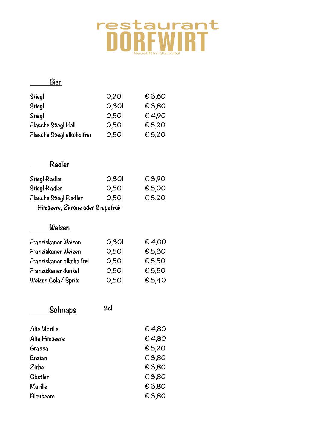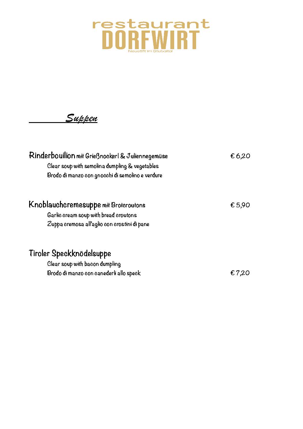 Unsere Speisekarte und Getränkekarte in Neustift im Stubaital
